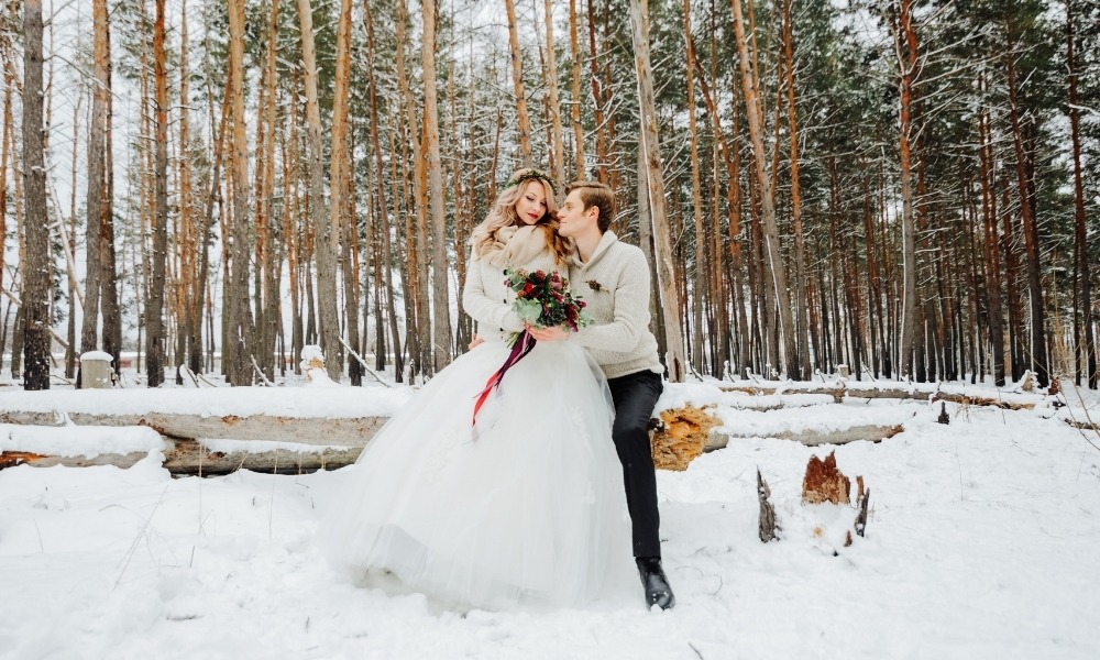 Zimní svatba přeje materiálům, které v létě neunosíte. Samet, umělé kožešiny, pletené plédy nebo flitry. Pánové v třídílných oblecích se nepotí a vy se nemusíte bát, že vám zvadne kytice dřív, než dojdete k oltáři.